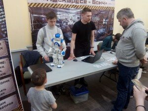 Мы собирали с детьми их первых роботов (мастер-классы Кружка робототехники для детей), рассказывали про наше новое направление - DIY-Bio SPb, а также на нашем стенде танцевал робот Nao!